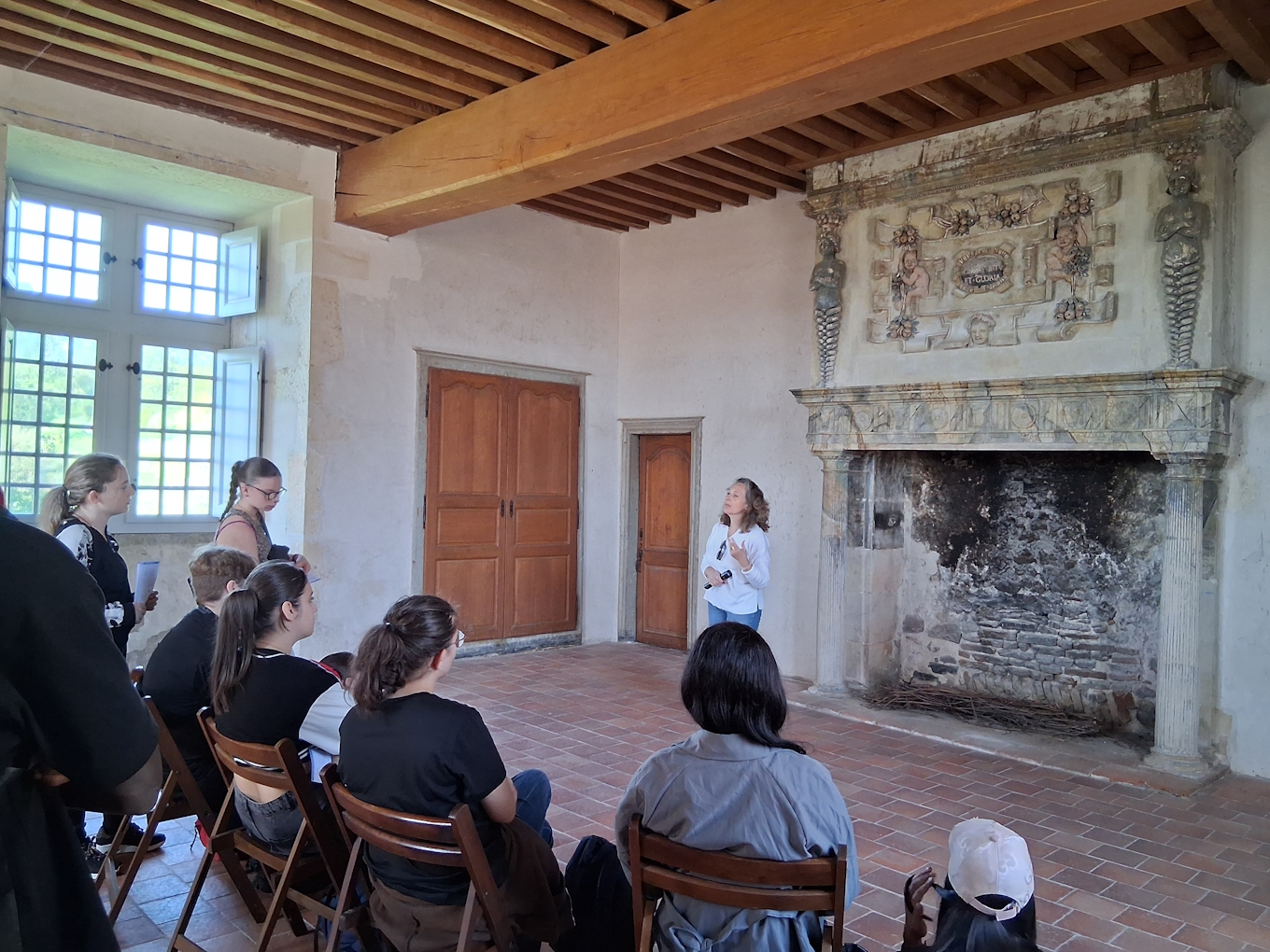 Et pour explorer une autre facette de la culture, l’après-midi se prolonge par une visite du château menée par Sophie Grolet qui nous régale d’histoires croustillantes, hautes en couleurs sur les grotesques que l’on peut admirer sur les murs du château de Chareil-Cintrat.