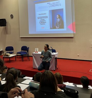 À travers l’analyse de vidéos et d’exemples concrets, Elena Volochine a démontré comment les récits politiques se construisent, souvent en déformant la réalité. « Il faut un temps d’adaptation au journaliste pour s’habituer à recueillir la seule vérité qui vaille en Russie : celle de Vladimir Poutine… Celle qui n’existe pas. » : c’est ainsi que l’autrice de Propagande : l’arme de guerre de Vladimir Poutine s’attache à démonter les rouages d’un discours officiel que nul ne doit contester sur le sol russe ; c’est cet essai richement documenté qui a valu à Elena Volochine d’être récompensée par le 9è prix Albert Londres du livre.