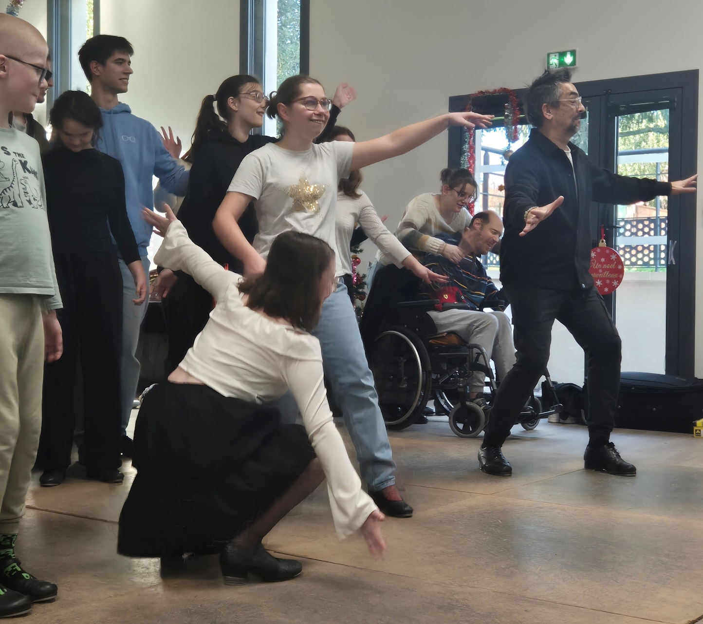 En parallèle, un atelier partagé de body clapping et claquettes, animé par Sylvain Pitaval, a réuni étudiants, enfants, adolescents et adultes en situation de déficience visuelle dans une ambiance joviale où échanges et entraide ont pu naitre. Très rapidement, le rythme est devenu un langage commun : chacun a participé à sa manière pour construire ensemble un petit spectacle.